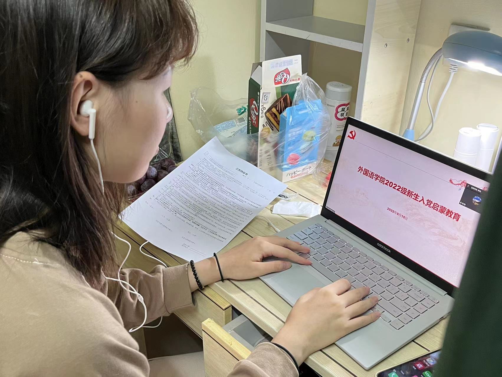 接着,组织员陈静老师就发展党员的流程、入党相关材料书写格式要求两个方面细致阐述,图文并茂地向同学们直观介绍了学生党员的发展流程,并分条陈述了入党申请书、思想汇报的撰写要求。