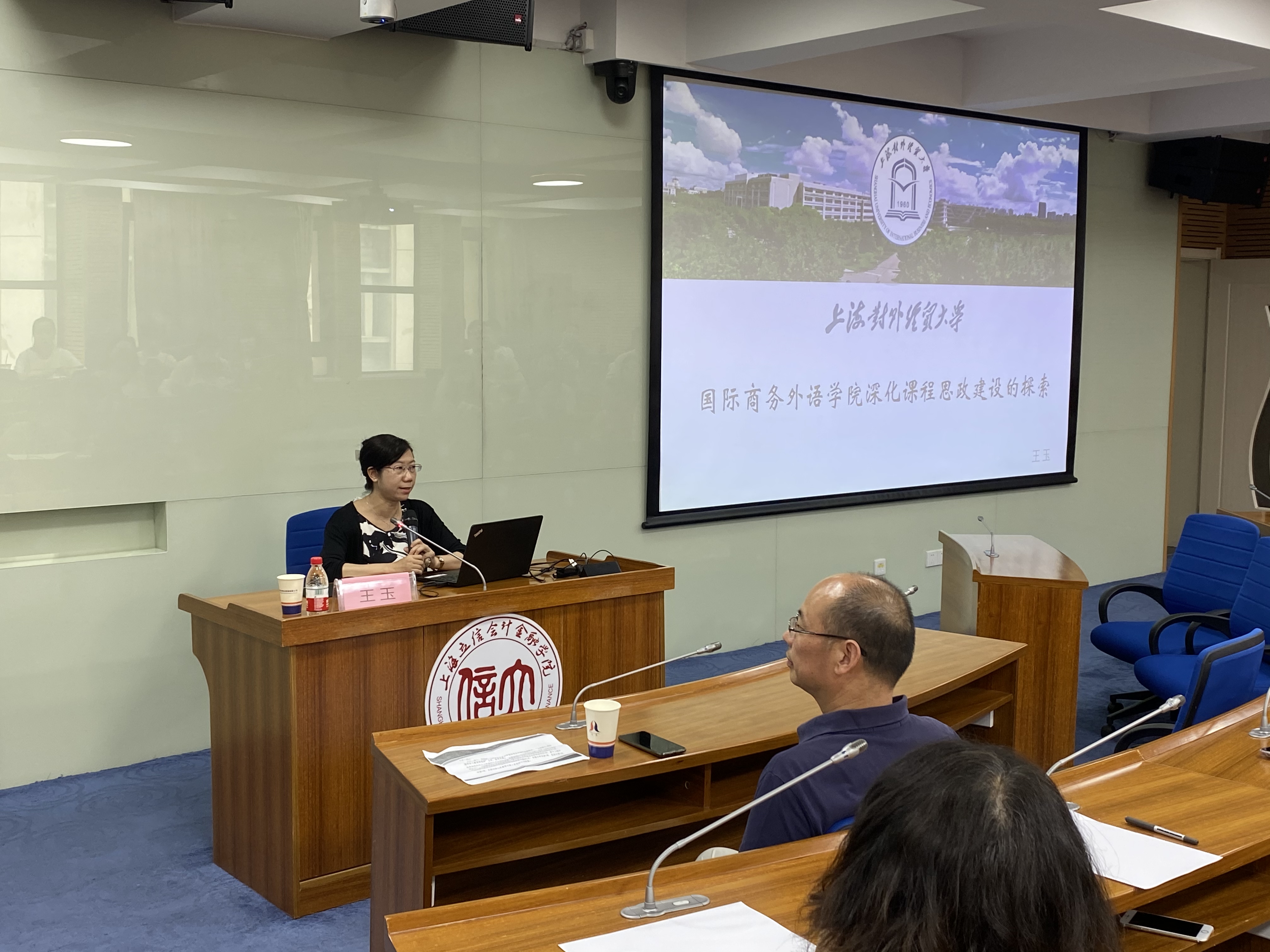 2021年6月9日下午,上海对外经贸大学国际商务外语学院副院长王玉博士受我院党政领导邀请,为学院松江校区教师做了有关课程思政建设的讲座。顾德华书记、邵军航院长、高永祥副书记出席了活动。