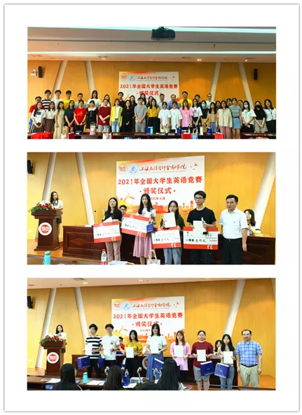 2021年6月9日,我校2021年(第23届)全国大学生英语竞赛颁奖仪式在松江校区行政楼报告厅举行。外国语学院党总支书记顾德华,党总支副书记、副院长高永祥,以及全国大学生英语竞赛立信赛区组委会办公室教师和获奖学生代表等参加颁奖仪式。