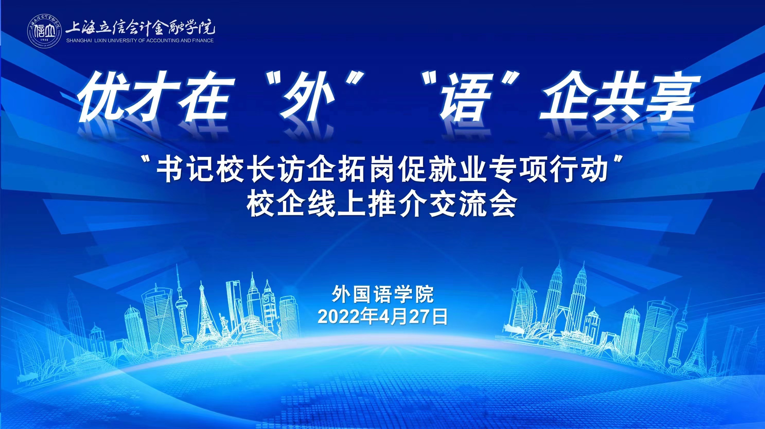 为深入贯彻落实党中央、国务院关于高校毕业生就业工作的决策部署和教育部、上海市相关工作要求,进一步深化校企合作交流与人才推介工作,开拓更多就业岗位,促进2022届毕业生高质量就业,4月27日下午,外国语学院在腾讯会议平台上召开“优才在‘外’ ‘语’企共享”校企线上推介交流会。校党委常委、副校长陈洁出席会议并讲话。校招生与就业办公室主任解丹阳、副主任沈劼,外国语学院党政领导班子成员邵军航、顾德华、高永祥、韩玫、李小坤参加会议。会议由外国语学院党总支书记顾德华主持。