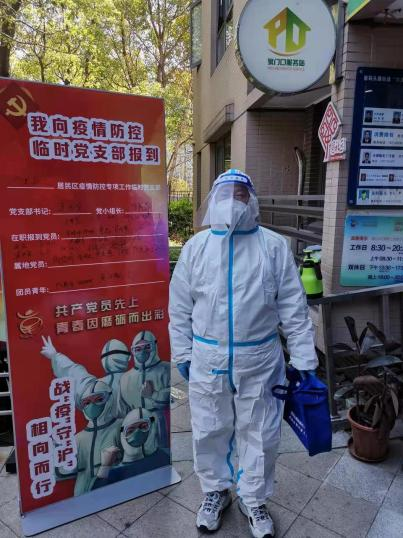 自3月18日所在小区开始封控后,第一时间到居住地大华第一居委会报到,亮明党员身份,报名参加志愿活动。