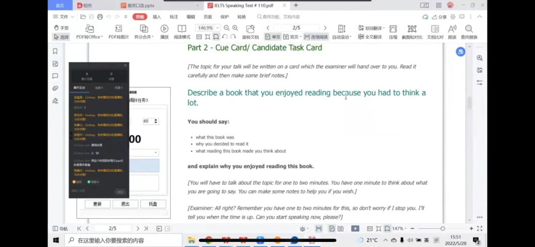 2022年10月26日下午,外国语学院产学研基地策马翻译为我院学生带来关于雅思证书入门培训的线上讲座。此次讲座是本学期我院与策马翻译展开的一系列实习培训项目的首次活动,学生们有很高的参与热情。主讲人为策马翻译Lindsey老师,她是策马全职译训师、外交部翻译司前高级翻译,拥有美国蒙特雷国际研究院英语口笔译硕士学位,并持有CATTI一级口译、二级笔译证书。她从考试结构、要求和题型等方面,深入浅出地为学生们介绍了雅思英语证书考试。Lindsey老师鼓励学生们提前规划自己的英语学习道路,并为学生们提供了很多雅思英语考试案例和备考经验,通过一系列有实战意义的方法和技巧,帮助大家克服畏难情绪,以更加积极主动的心态进行英语学习。