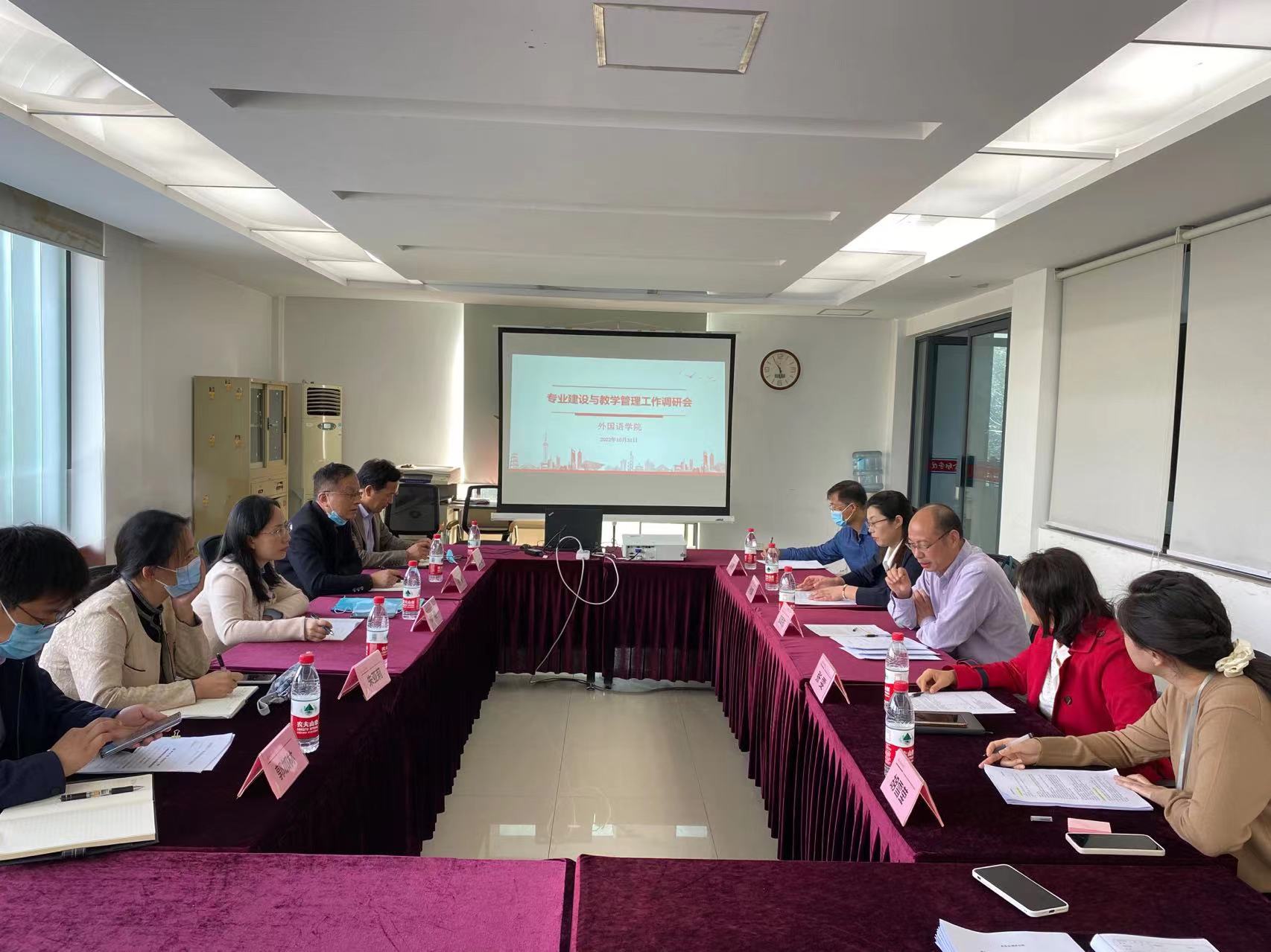2022年10月31日下午,教务处处长罗秦教授一行莅临外国语学院调研指导。院长邵军航、英语系主任张雯、日语系主任胡雪莹、英语专业主任孙吉娟和教师代表等参加了会议。