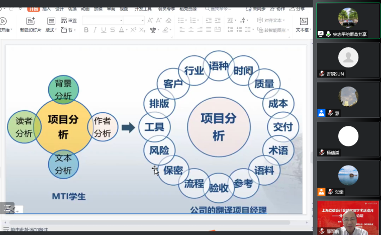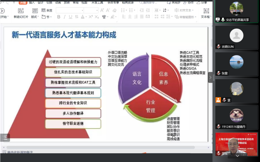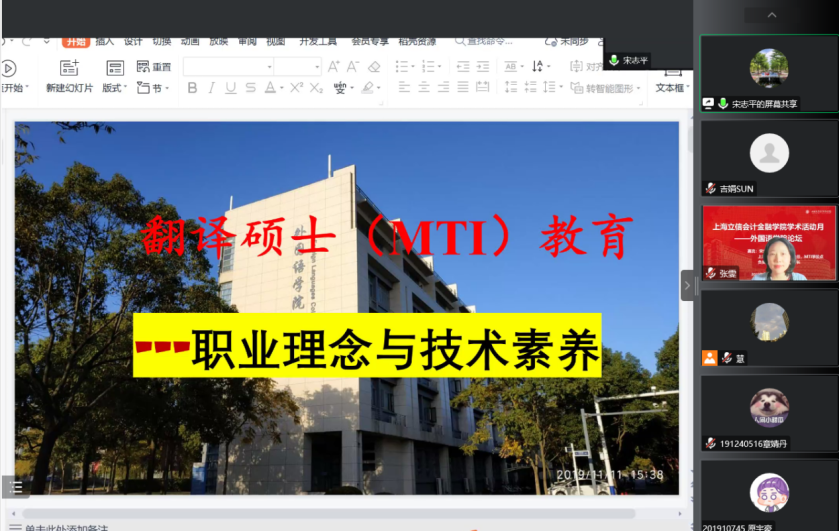 2022年11月1日晚上,上海海事大学宋志平教授应邀为我院师生在线上举行了一场题为“MTI教育——职业理念与技术素养”的讲座。