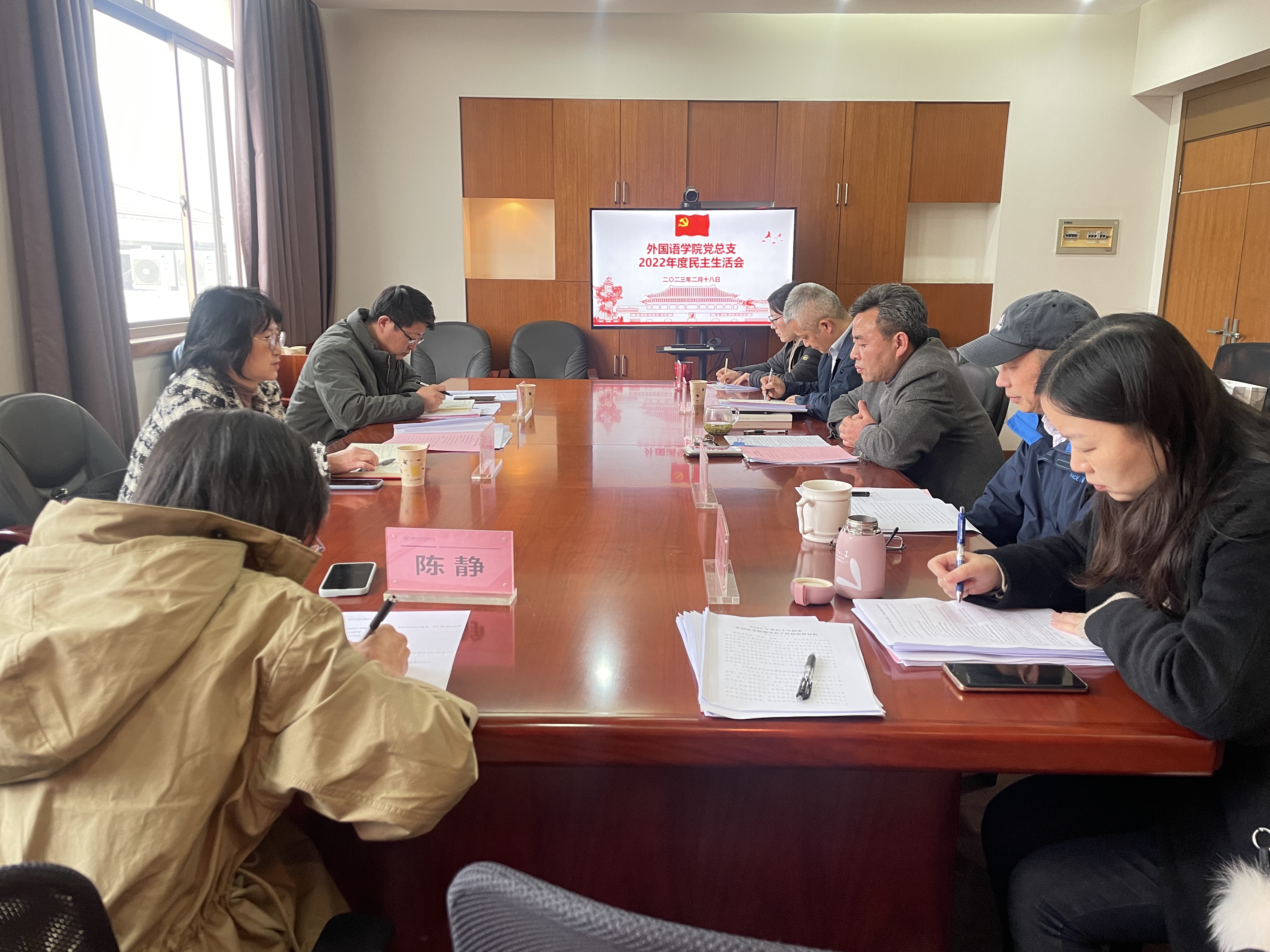 2022年2月18日,外国语学院民主生活会顺利召开。分管校领导陈洁副校长、校督导组联络员赵振举、外国语学院党政领导班子成员、专职组织员和党务干事出席会议。会议由学院党总支书记顾德华主持。