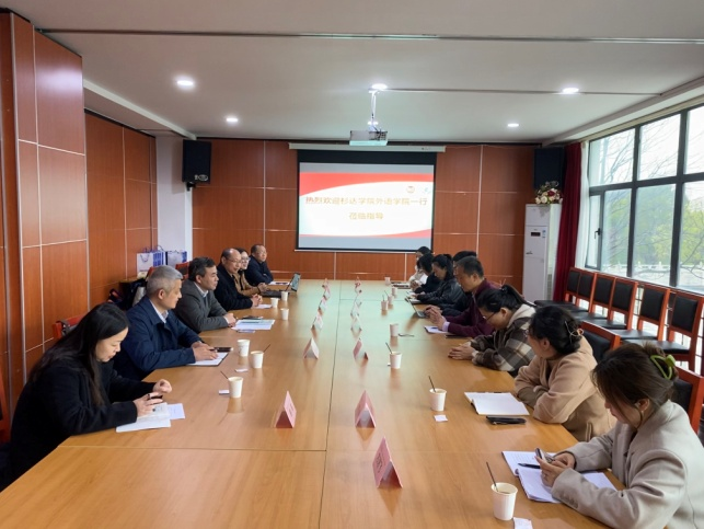 3月17日上午,上海杉达学院外语学院院长曾泰元、党总支副书记(主持工作)曹欣欣等一行8人前来我院调研,我院党总支书记顾德华、院长邵军航带领全体领导班子及大学外语部主任等参加了座谈会。