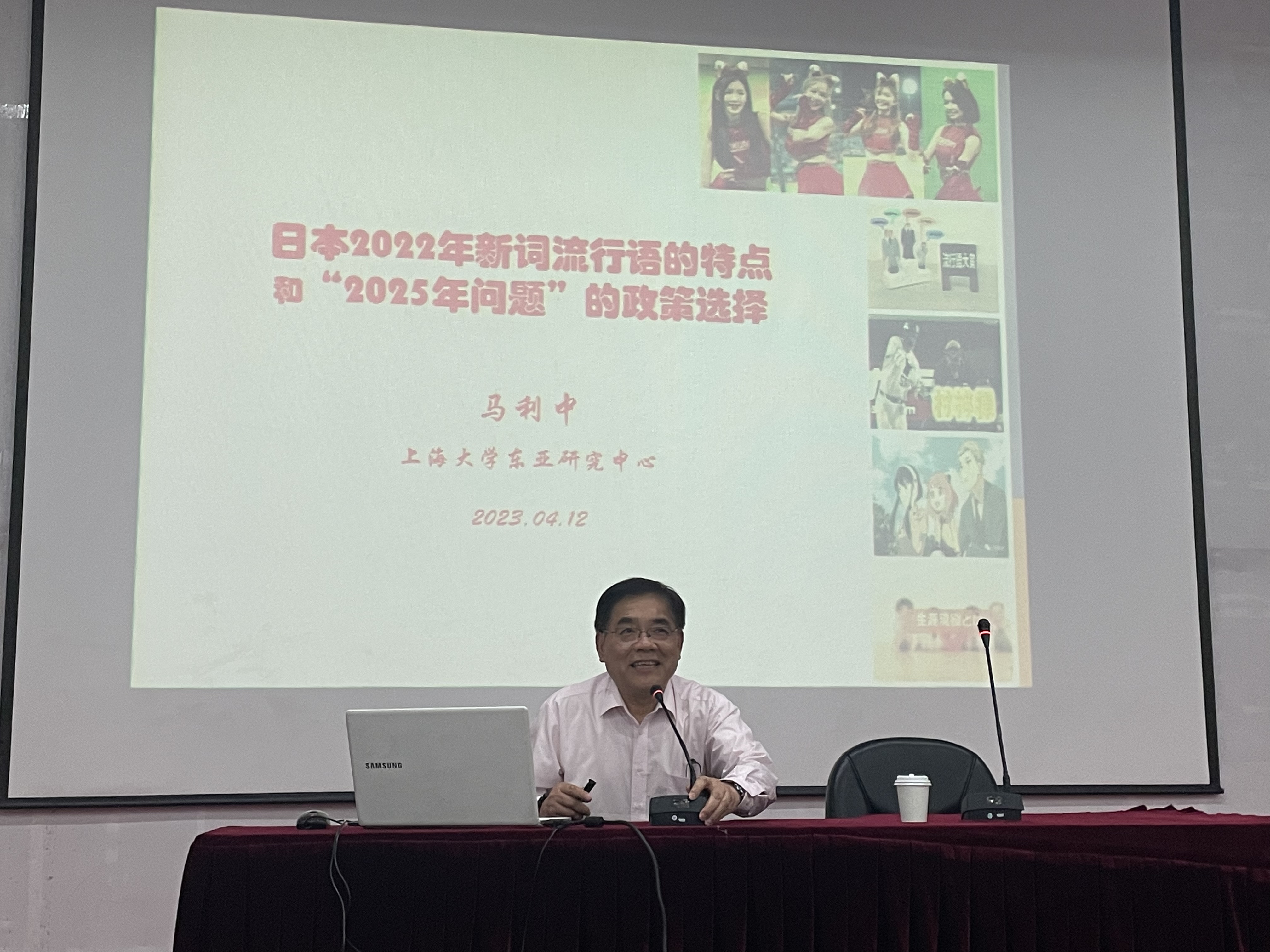 马教授指出,新词流行语作为一种词汇现象,反映了一个国家和地区在一个时期人们普遍关注的问题和事物,反映出人口社会的变化。他从语言学的视角,通过对2022年新词流行语的梳理与分析,让学院师生了解日本社会的现状和问题。马教授对学院青年教师的科研提出建设性意见。