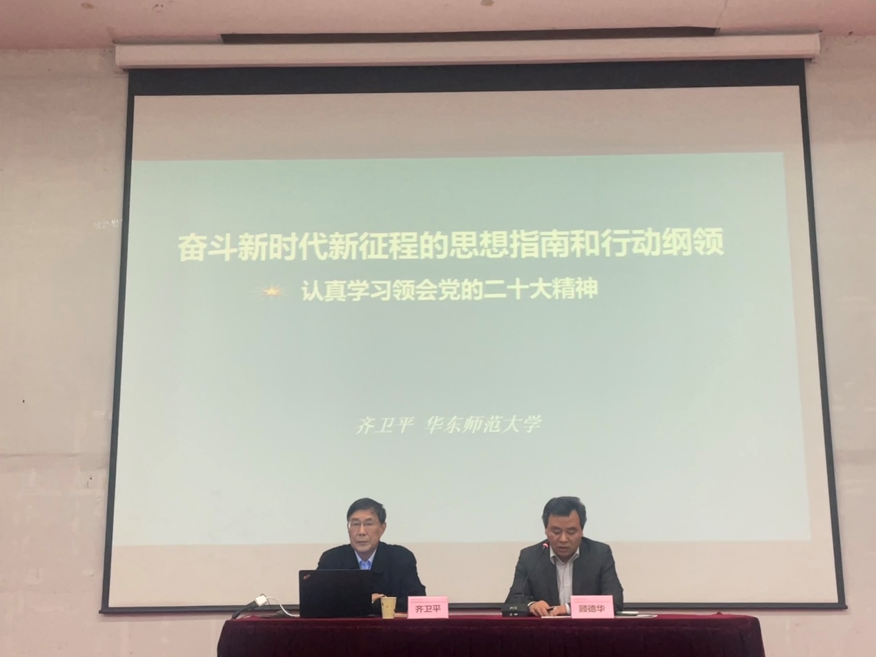 为深入学习贯彻党的二十大精神,3月29日,外国语学院举办党的二十大精神专题辅导报告会。特邀华东师范大学终身教授、博士生导师齐卫平教授向学院师生作专题辅导报告。报告会由学院党总支书记顾德华主持。