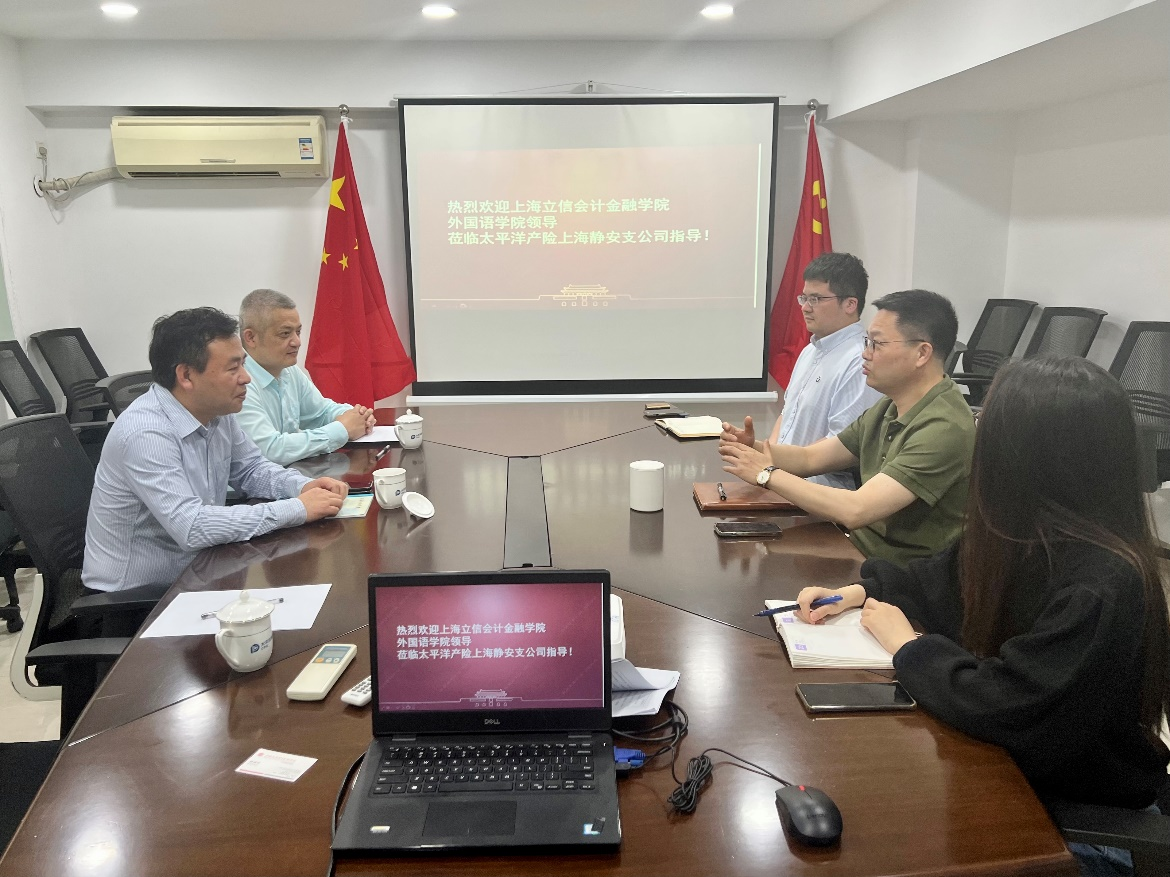 5月18日,外国语学院党总支书记顾德华,党总支副书记、副院长李伟等一行走访了太平洋产险上海静安支公司。公司总经理孙向阳先生等热情接待了学院一行并进行了座谈交流。