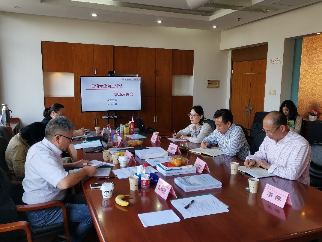 专家组现场考察的内容包括师生座谈、课堂听课、试卷检查、毕业论文审查和支撑材料查阅等。经过现场考察,专家们一致认为日语专业的培养目标符合学校的办学定位,课程体系较为合理,产学研基地建设能够满足学生的实习需求,国际交流特色鲜明。围绕日语专业的师资、科研、图书资料等问题,专家们也给出了建设性意见。在现场考察会上,外国语学院党总支书记顾德华对专家的到来表示衷心欢迎,并对学院和日语专业的基本情况作了介绍。针对专家的反馈意见,外国语学院院长邵军航表示学院会以本次专业评估为契机,正视日语专业教育教学中存在的问题,制定整改方案,逐项落实。牛媛媛副主任认为外国语学院日语专业开展的自主评估活动为我校明年顺利开展本科教育教学审核评估工作打下了基础。