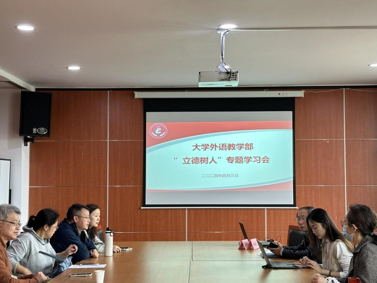 根据学院2024“师德师风建设年”实施计划安排,4月3日下午,大学外语教学部组织教师开展了“立德树人”主题集中学习活动。