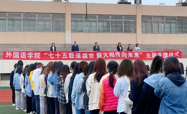 为迎接新中国成立75周年,进一步弘扬爱国主义精神,加强大学生理想信念教育,铸牢中华民族共同体意识,2024年4月29日早晨,外国语学院在松江校区操场隆重举办“七十五载逢盛世,薪火相传向未来”主题升旗仪式。学院党总支书记顾德华,党总支副书记、副院长李伟,全体辅导员,学生党员,团学干部及2023级新生共同参加此次活动。
