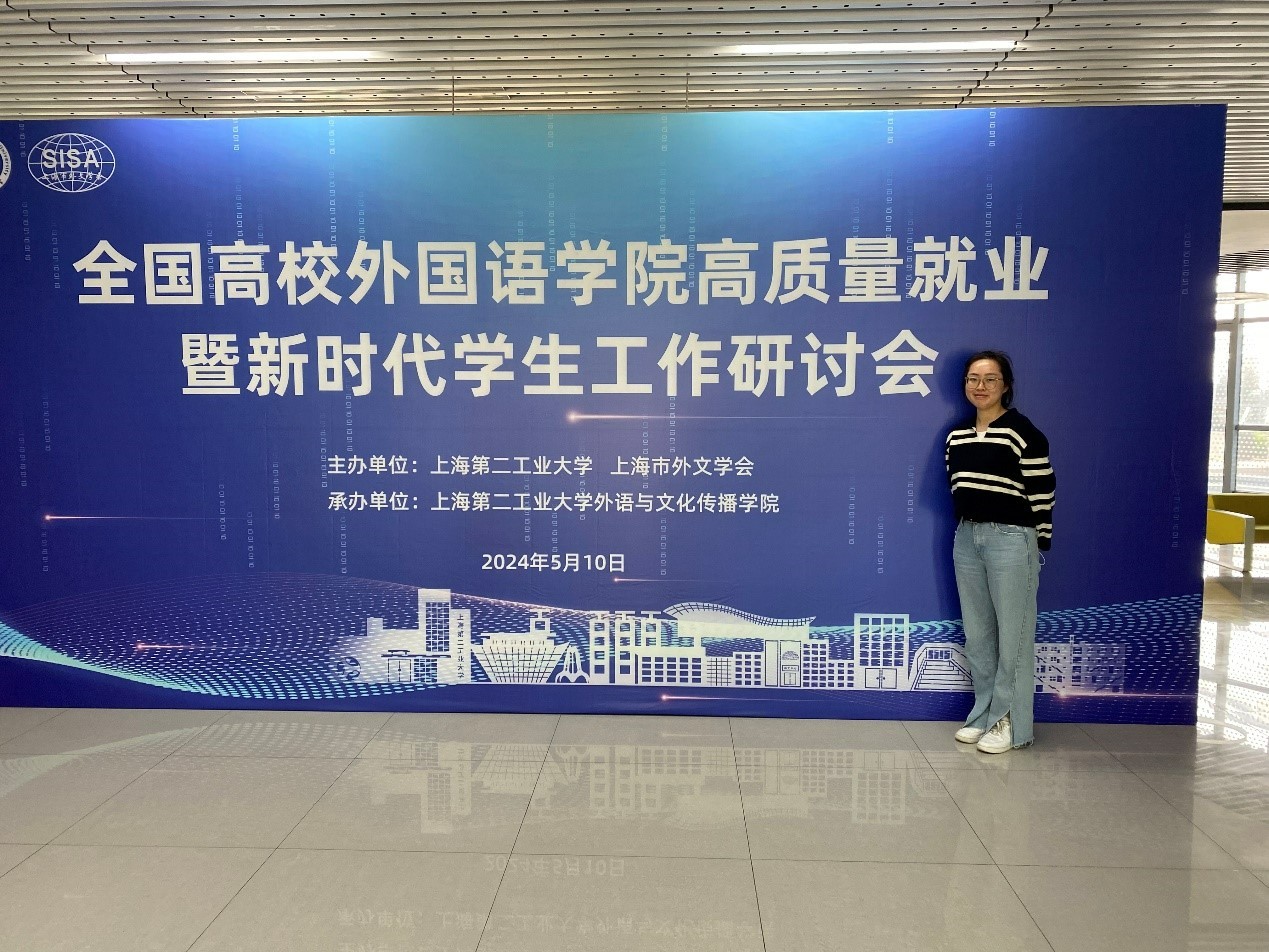 2024年5月10日,全国高校外国语学院高质量就业暨新时代学生工作研讨会(以下简称“就业研讨会”)在上海第二工业大学金海路校区召开,外国语学院委派杨莹老师参会。