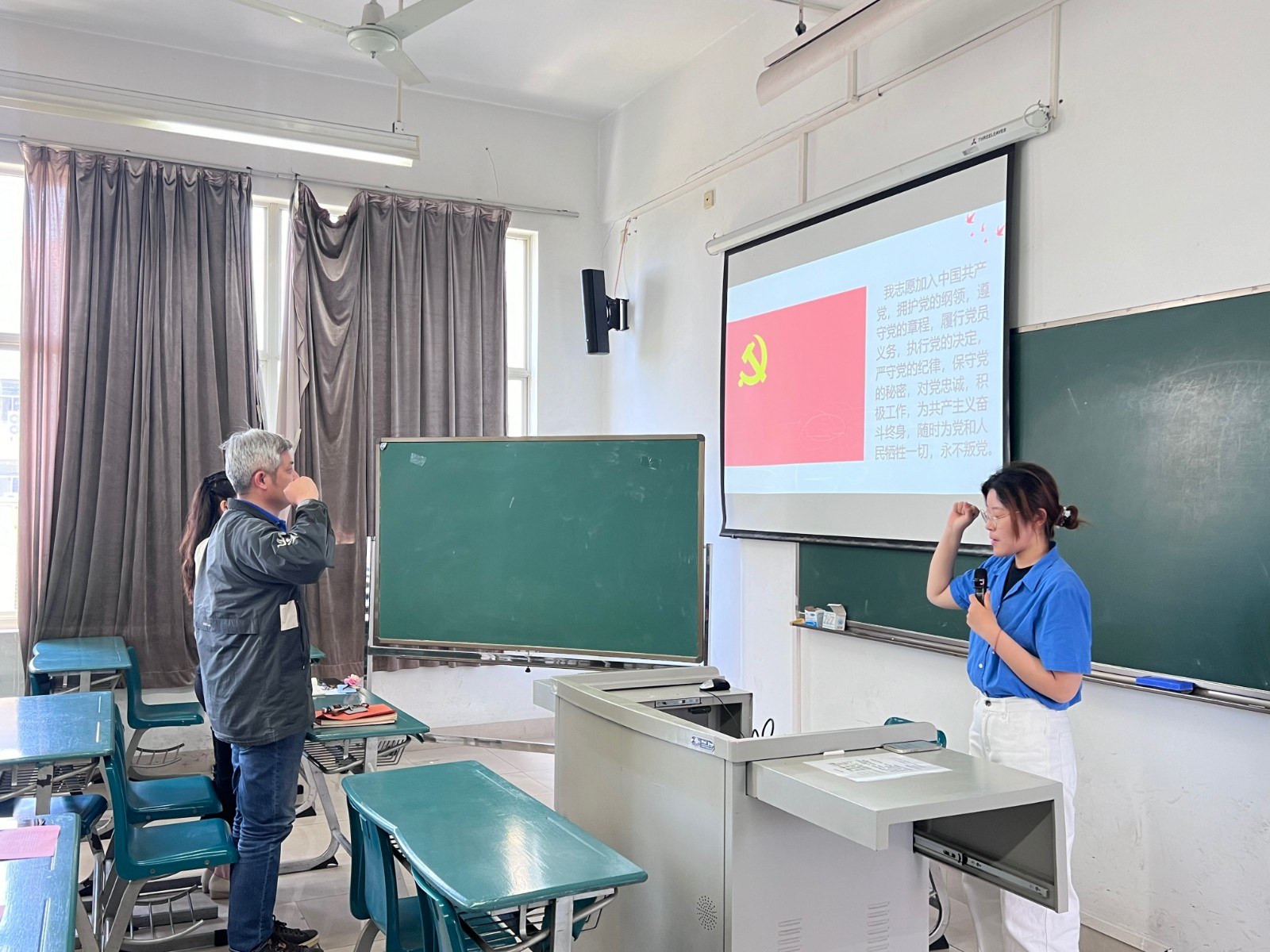 为深入学习贯彻习近平新时代中国特色社会主义思想,进一步加强毕业生党员思想政治教育,提高党性修养,使毕业生党员继续在新征程中发挥先锋模范作用,2024年5月16日中午,外国语学院学生党支部开展2024届毕业生“党旗引领铭初心 奋楫扬帆启新程”专题党课,学院党总支副书记、副院长李伟,学生党支部书记李雅琼,全体辅导员,全体学生党员参加此次活动。
