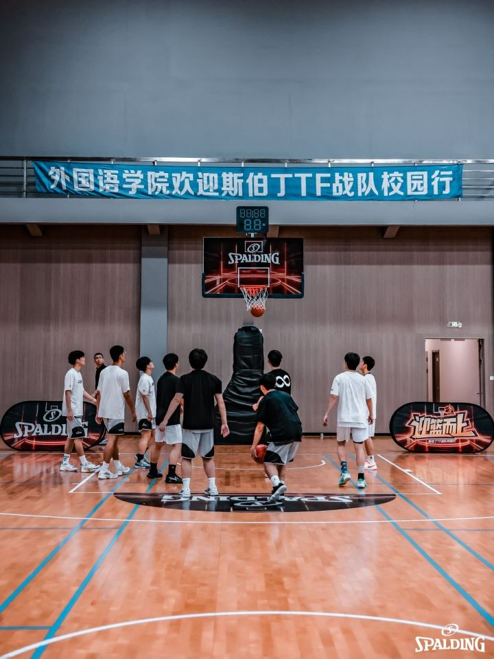 6月5日, “迎篮而上”斯伯丁篮球校园行松江大学城站在我校文翔路校区篮球馆举行。本次比赛为我校篮球队与斯伯丁TF战队的对决,由斯伯丁体育用品(中国)有限公司主办,上海春鸟网络科技有限公司、外国语学院学生体育运动队协办,校篮球队、教职工篮球队以及校内外高校篮球爱好者受邀前来参加。整场比赛场面激烈、欢呼迭起,最终我校篮球队以91vs100的比分惜败斯伯丁TF战队。