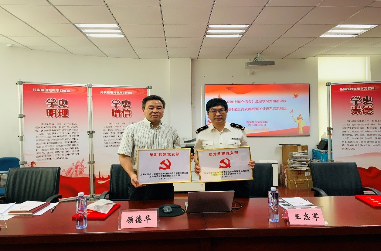 2024年6月7日上午,外国语学院教师第三党支部党员教师在外国语学院党总支顾德华书记、邵军航院长的带领下,赴上海海关学院海关外语系党支部进行党支部共建签约及联学联建活动。