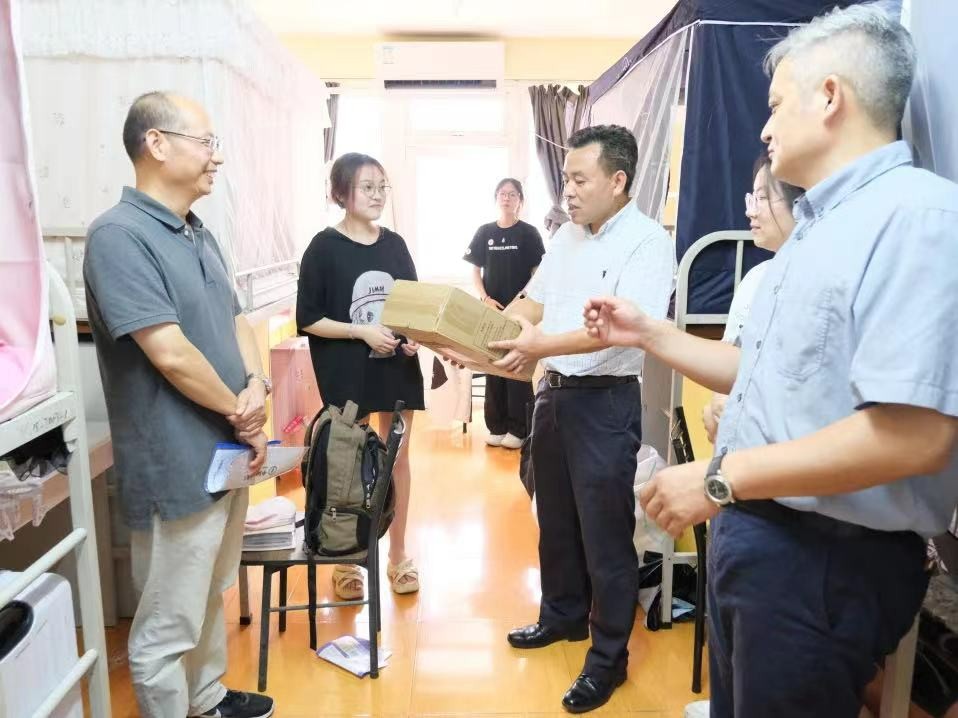 情系新生,关怀入寝。下午14:00,学院领导班子和新生辅导员老师一同走访了新生宿舍,认真倾听了新生初入大学校园的感受,耐心解答了家长提出的疑问,并为新生同学送上了慰问礼物。学院领导还特别关心新生的心理状态,鼓励他们遇到困难时要勇于面对挑战、积极寻求帮助,与同学们携手并进,共同成长。
