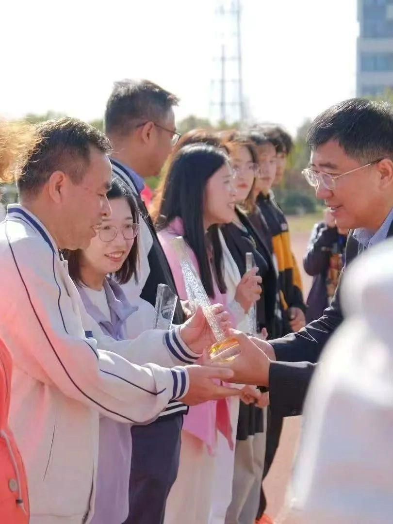 校党委副书记、纪委书记、监察专员刘艳,党委副书记、副院长王军华,党委常委、副院长温景春宣读2023年阳光体育大联赛体育道德风尚奖、优秀运动员、优秀组织奖、优秀指导教师等获奖名单。解超和杨力为获奖单位及个人颁奖。外国语学院荣获体育道德风尚奖(团体),严善曦同学荣获“体育先进个人”。这不仅是对过去一年来外国语学院体育建设工作的充分肯定,更是对当下一年体育建设工作的美好期许。