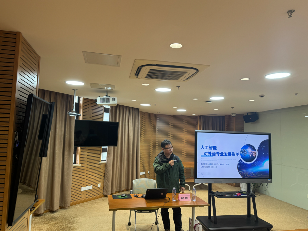 讲座中,赵刚教授围绕人工智能对外语专业的冲击、外语专业的应对策略以及华东师范大学的探索实践等方面,进行了详细而深入的剖析。他强调,人工智能技术的迅猛发展,不仅重塑了传统外语教育的格局,也对教学评估、专业能力培养及招生就业等方面提出了更高要求。面对挑战,我们应积极培养学生的技术能力、思辨能力和创新能力,着力培养能够与AI工具协同工作的复合型人才。