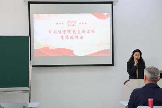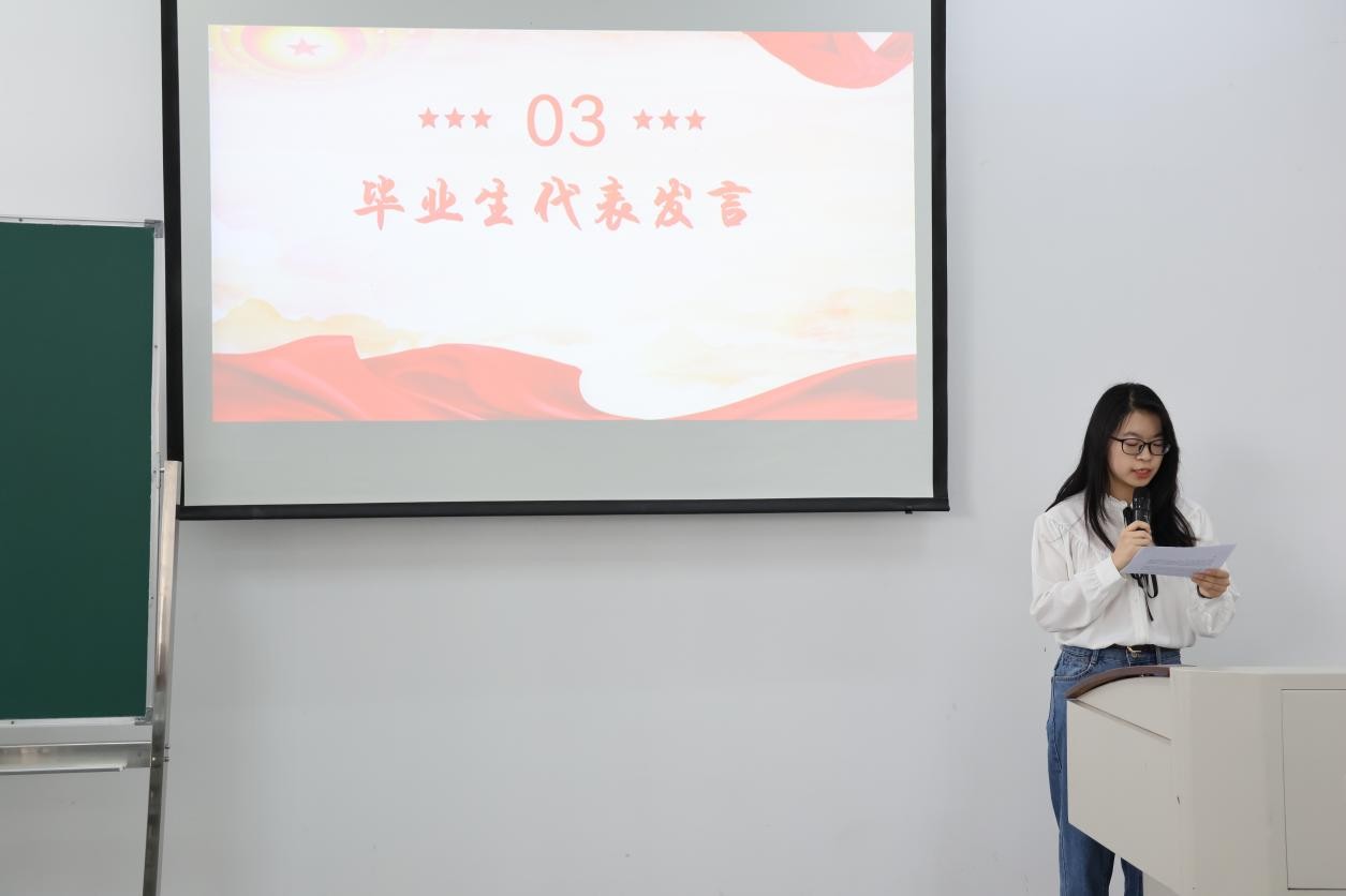 其次,支部书记李雅琼对毕业生党员进行了离校前的党性教育讲话,她引用了习近平总书记的讲话:“新时代中国青年作为改革的主力军,应始终保持危机意识,勇于担当时代赋予的历史使命和社会责任,积极投身到中国特色社会主义伟大实践中去。”鼓励毕业生党员要坚持党的领导,发挥先锋模范作用,要发扬中国传统文化,做好传播人,在实践中砥砺奋斗,勇于在复杂的实践环境中增长才干,勇担时代重任,为中国式现代化挺膺担当。