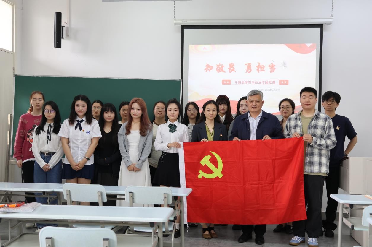 为关切毕业生的个人成长,进一步加强毕业生党员思想政治教育,提高党性修养,以正确的姿态投身社会、服务国家,2025年4月24日上午,上海立信会计金融学院外国语学院学生党支部开展2025届毕业生“知敬畏·勇担当——扣好职业生涯‘第一粒纪律纽扣’”专题党课,学院党总支副书记、副院长李伟,学生党支部书记李雅琼,全体辅导员,全体学生党员参加此次活动。