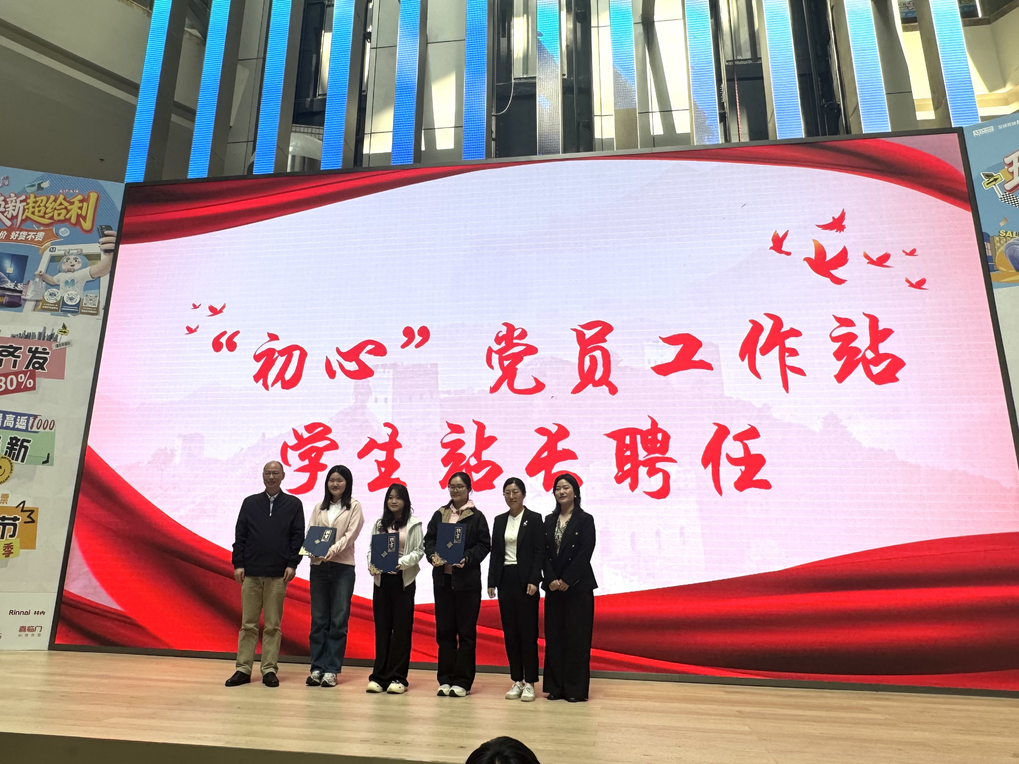 仪式现场同步举行“初心”党员工作站校外导师聘任仪式与学生站长聘任仪式,进一步夯实党建引领基层治理与实践育人阵地。