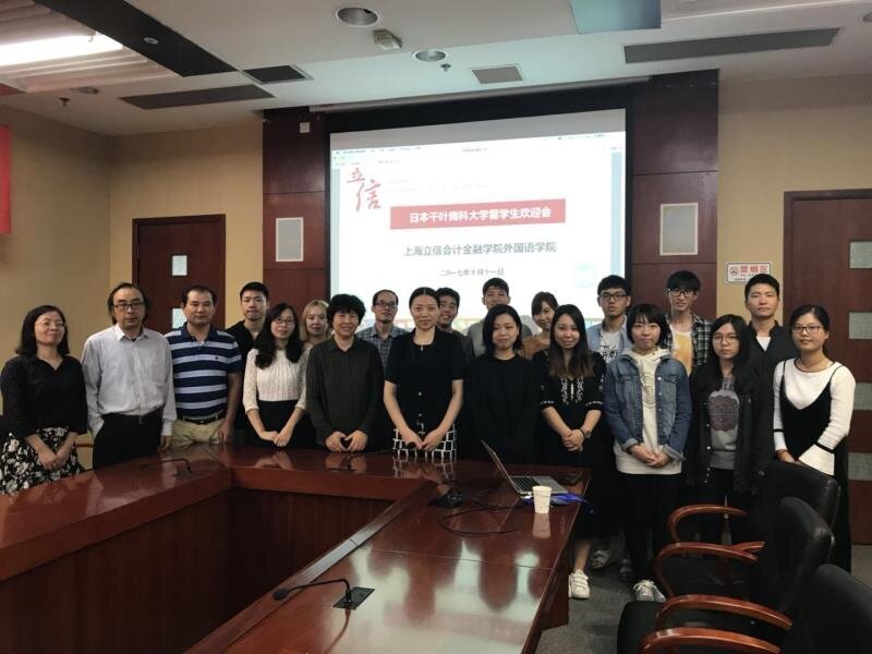 外国语学院党政班子及各专业教研室主任出席了欢迎仪式。在欢迎仪式上,院长涂丽萍致辞,对八名千叶商科留学生的到访表示热烈的欢迎,并对他们今后在立信的学习及生活提出了殷切的期望与关怀。各位留学生也一一以简短的英文做了自我介绍,并表达了谢意。