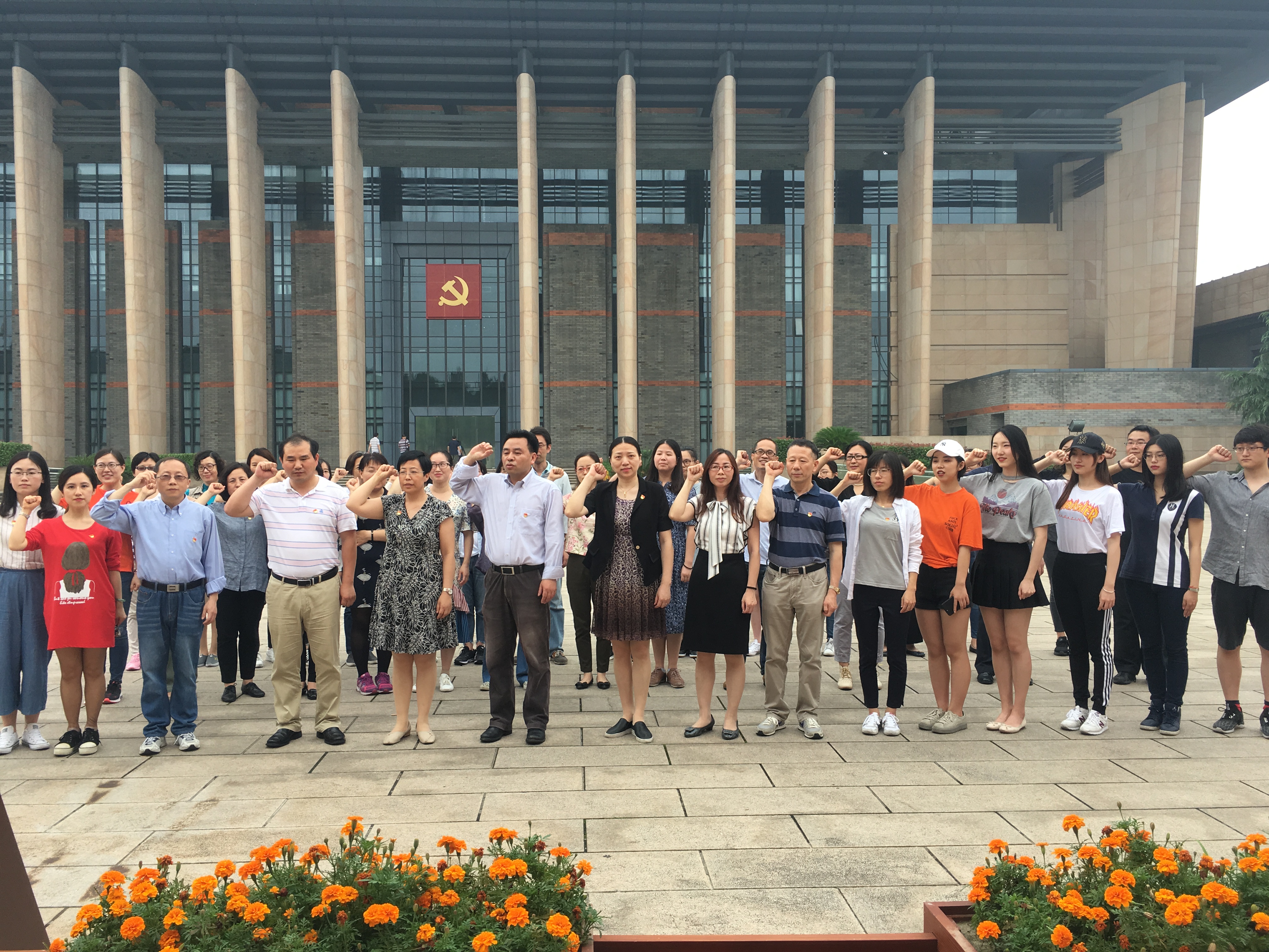 在纪念馆的宣誓墙前,党员们在鲜红的党旗前庄严郑重地举起右手,在党总支书记的领誓下,重温了入党誓词。进一步唤醒了党员意识和责任意识,坚定了理想信念。