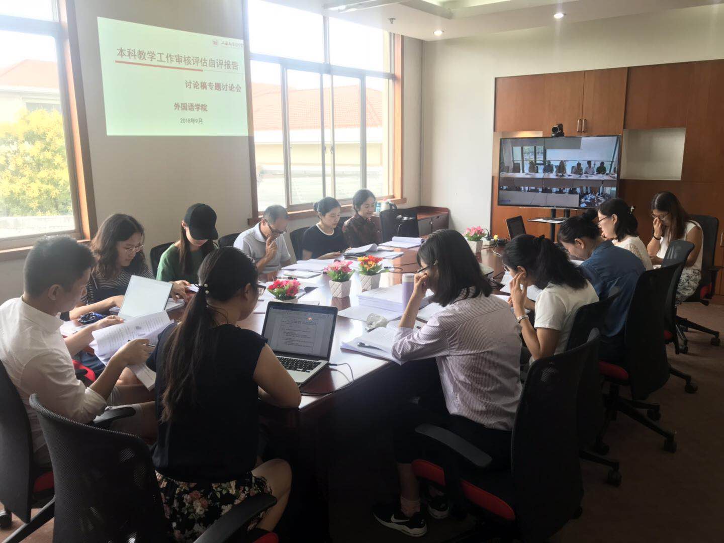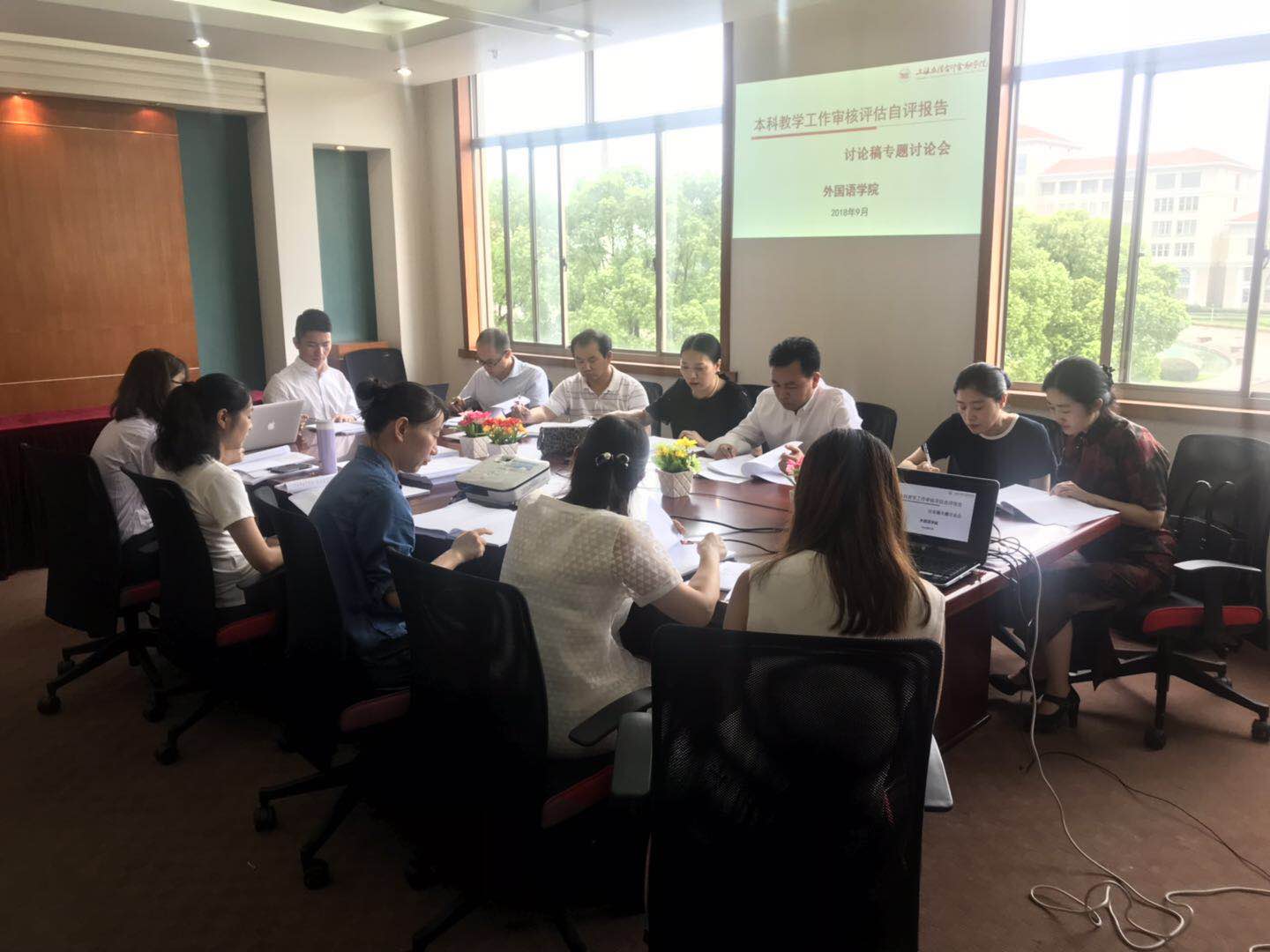 9月12日下午,外国语学院在松江校区和浦东校区召开《本科教学工作审核评估自评报告(征求意见稿)》专题讨论视频会。外国语学院领导班子、各专业负责人、教研室主任、教师代表、教务人员、行政工作老师,以及学生代表出席了本次讨论会。会议由涂丽萍院长主持。