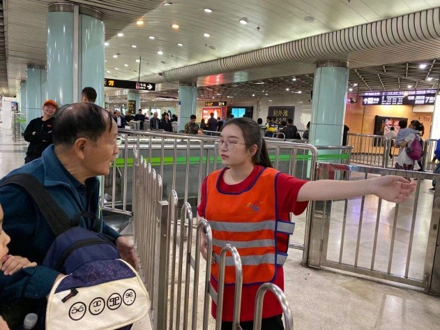 党员们在志愿活动期间主要负责引导进、出站,路线指引、翻译、帮助购票充值等工作。在各自岗位上,他们认真负责、恪尽职守,充分发扬“奉献、友爱、互助、进步”志愿者精神,发挥主观能动性,指引乘客找到正确的出站口,帮助国外游客进行准确的翻译,护送老人到无障碍电梯,帮助游客成功买票,保证地铁交通井然有序,用实际行动为乘客带去便利与温暖。