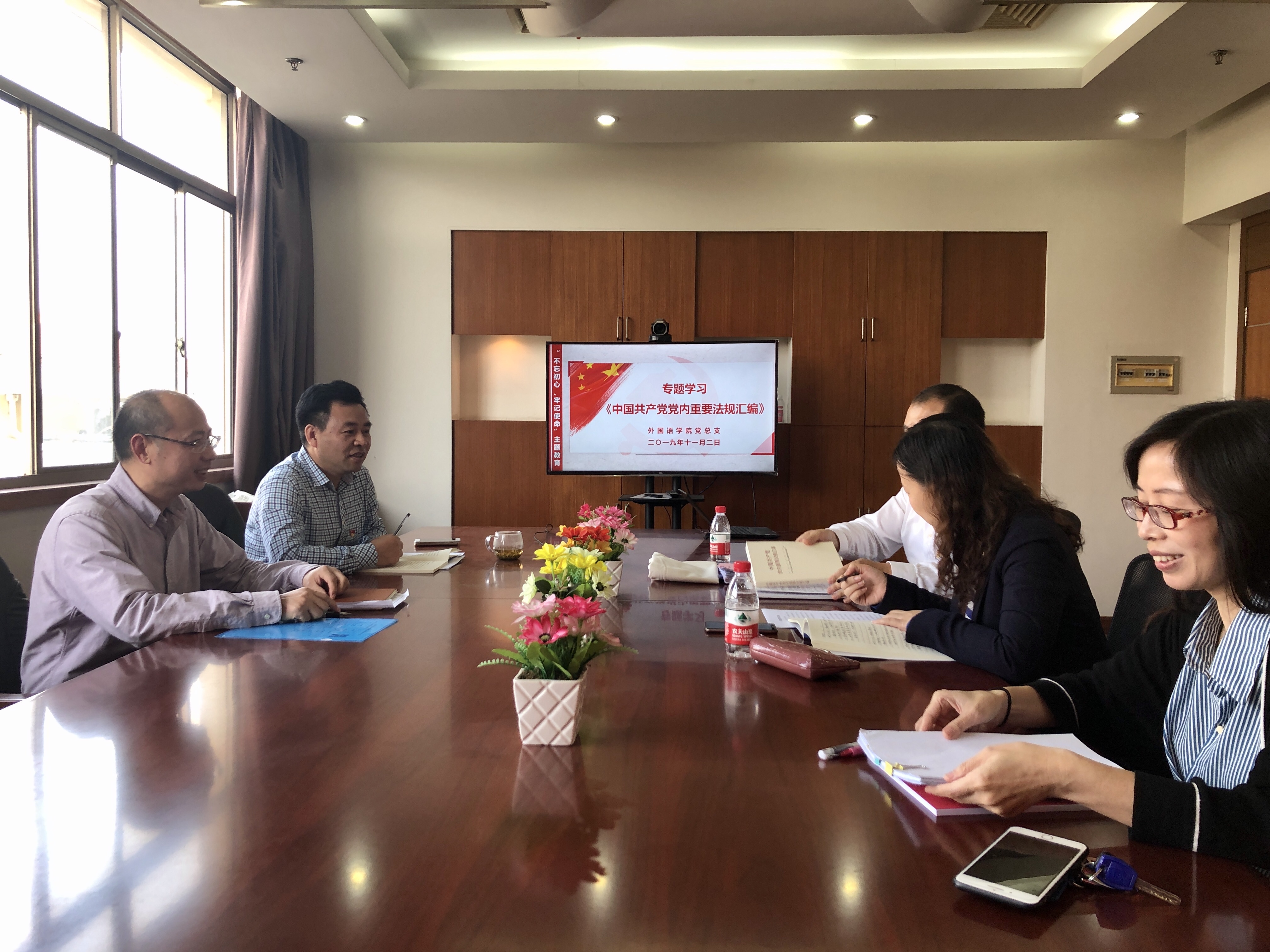 11月2日下午,外国语学院党政领导班子举行集中研讨,主题为“专题学习党章党规”。本次集中研讨由学院党总支书记顾德华作主题发言,其他班子成员作交流发言。