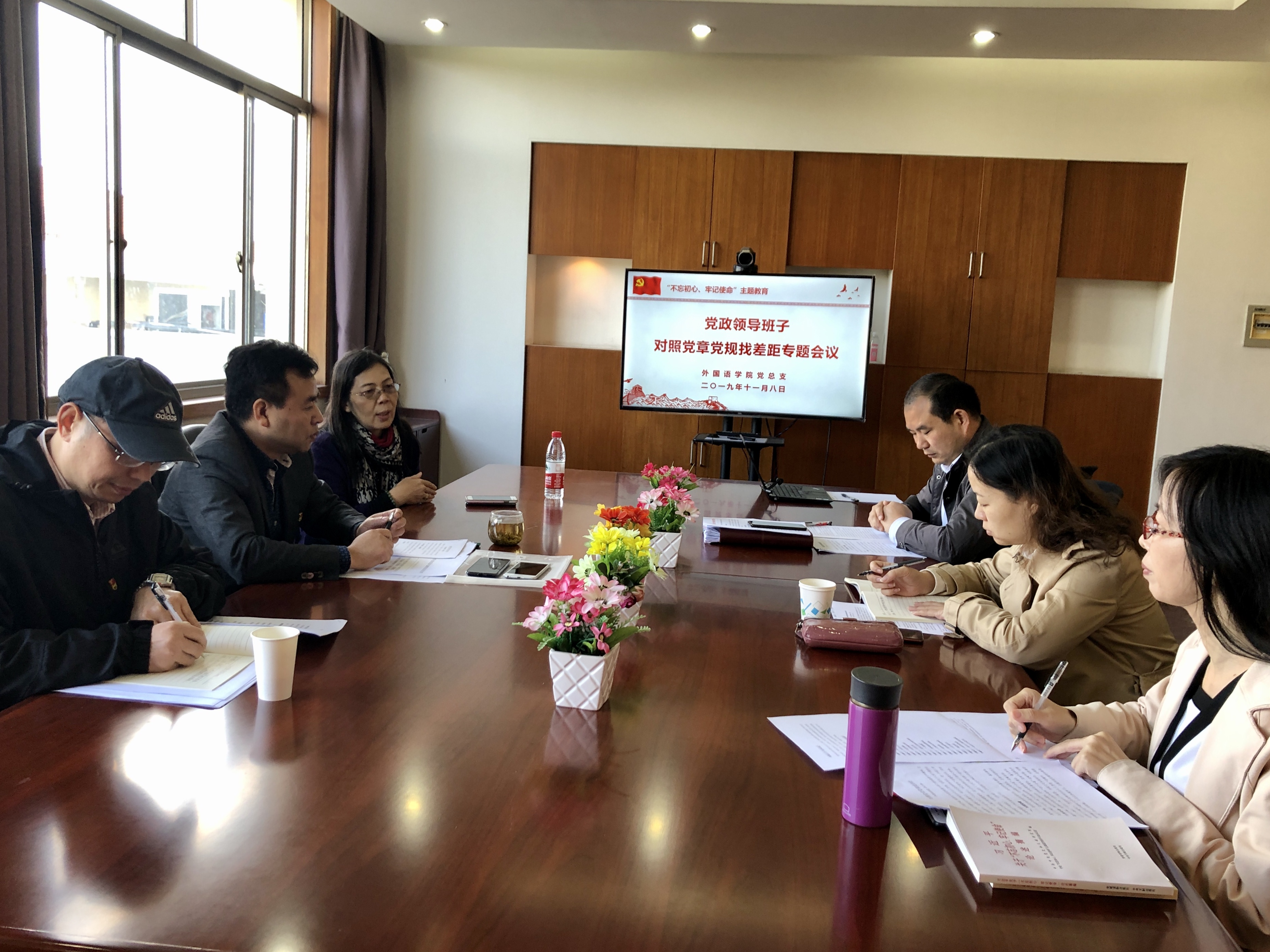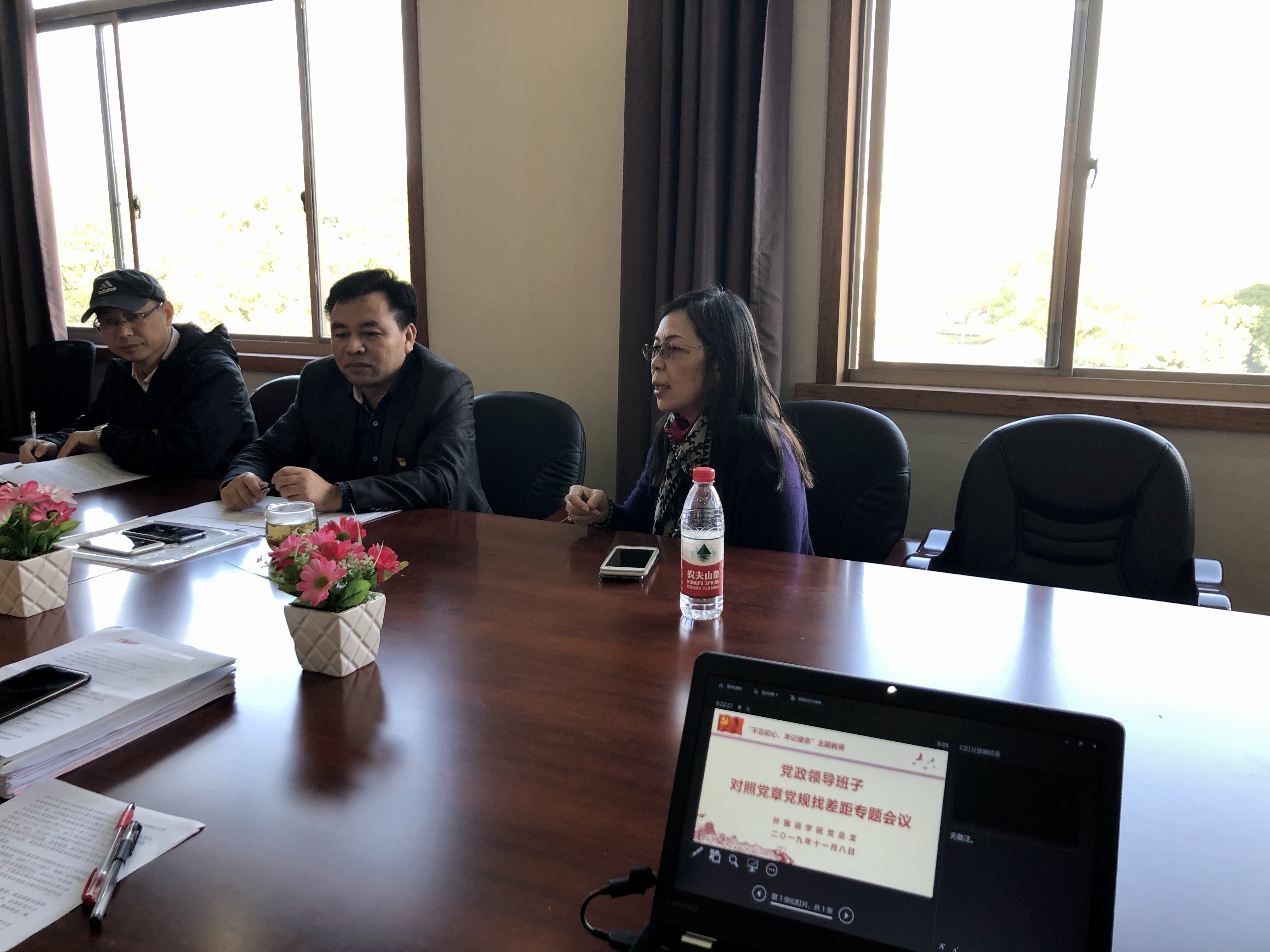 11月8日上午,外国语学院党政领导班子举行对照党章党规找差距专题会议,学校“不忘初心、牢记使命”主题教育第二指导组组长邬敏懿同志亲临指导会议。