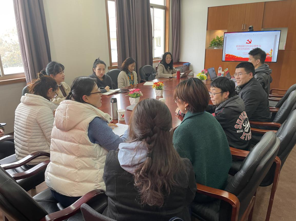 2020年12月2日下午,英语系教师在长乐楼316举行了《新文科宣言》、“一流本科课程建设”文件学习研讨会。老师们围绕教育部新文科会议精神、《新文科宣言》、《教育部关于一流本科课程建设的实施意见》和《上海高等学校一流本科课程建设实施方案》等文件展开热烈讨论。